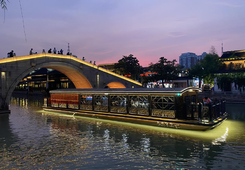 該船外觀及內(nèi)飾緊緊圍繞“紅船魂? 江南韻 ? 運(yùn)河情?國(guó)際范”的主題展開,整體采用仿古木藝的中式裝修風(fēng)格,充分彰顯嘉興江南水鄉(xiāng)、的文化魅力。